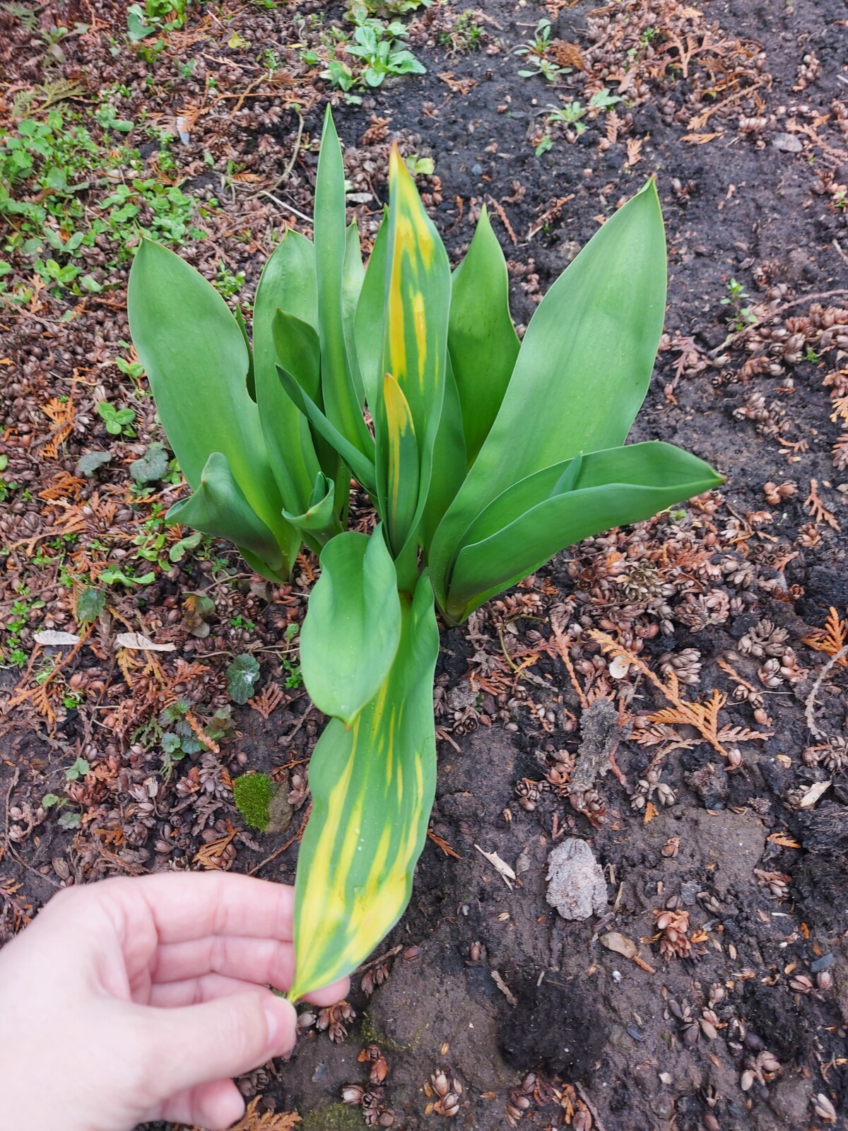 Скажите, пожалуйста, это вирус? Или так и должно быть? Название тюльпанов не знаю